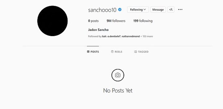 Jadon Sancho caused confusion after blacking out his Instagram profile and deleting all of his posts.
