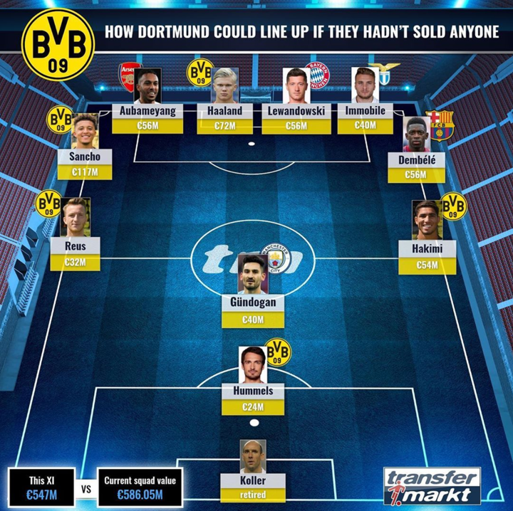 This is how Dortmund could exactly line up if they hadn't sold anyone. It is an XI of 4 forwards, 3 wingers, 1 wing-back, 1 defensive midfielder and 1 centre-back.