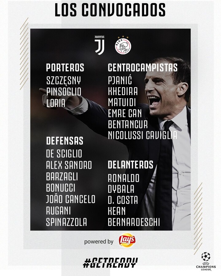 Juventus have announced their squad for Champions League quarter-final second leg match against Ajax at home.