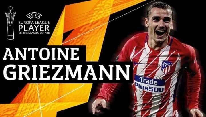 Atletico Madrid star Antoine Griezmann has officially been named 2017-18 UEFA Europa League Player of the Season ahead of Diego Godin and Dimitri Payet.