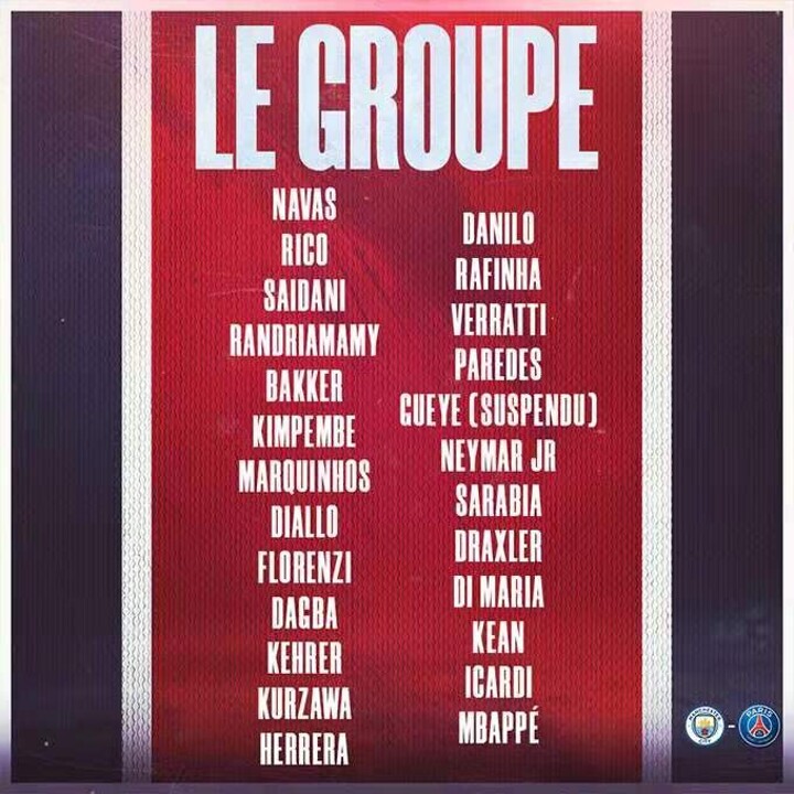 Neymar & Mbappe lead PSG UCL squad list against Man City; Gueye suspended