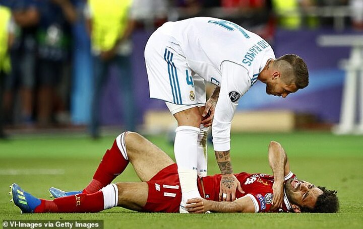One of the key moments of the final came in the first half when Ramos injured Salah by tugging on his arm before the pair collapsed to the ground while contesting for the ball.