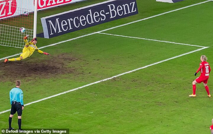 RB Leipzig forward Emil Forsberg drilled his spot-kick with formidable power down the middle and such was the speed, it first appeared Kobel had pushed it onto the bar with his hands.