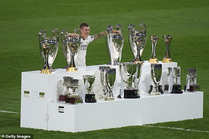 All of his silverware achievements at Madrid were additionally put on display by the club, with Kroos posing with the plethora of trophies before kick-off.