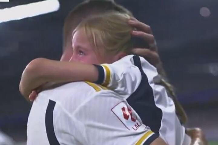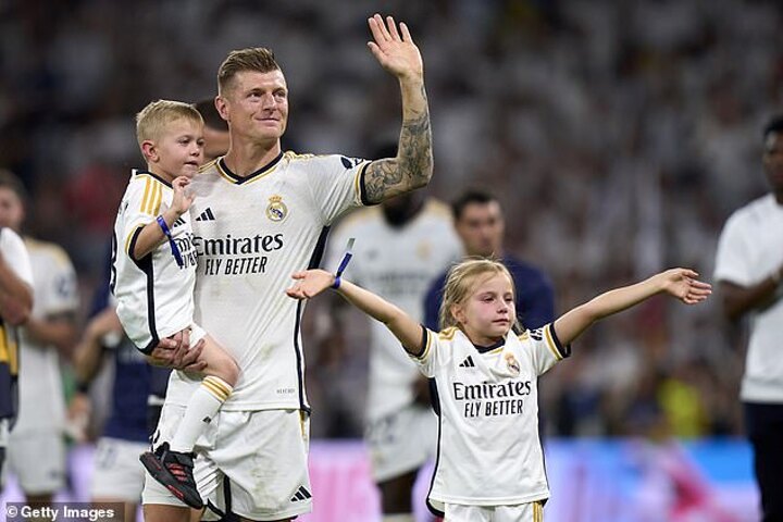 Kroos was overwhelmed with emotion as as he picked up his daughter in the dugout after being substituted, with the pair sharing a heart-wrenching embrace as they broke down in tears.
