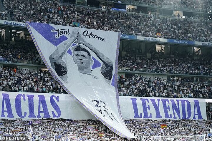 A huge banner of Kroos was erected with the words 'thank you legend' and the number 22 emblazoned across the design in relation to the titles he has won at the Spanish giants.