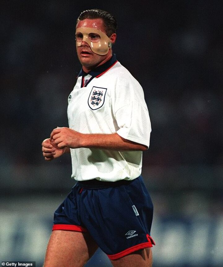 The attacking midfielder wore a mask in England's 1994 World Cup qualifier game after he took an elbow to the face by Dutch player Jan Wouters in a previous qualifier game.