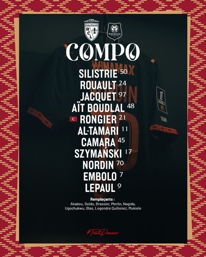 Rennes XI: Rongier, Embolo, Arnaud Nordin, Sebastian Szymanski, Mahdi Camara, Mousa Tamari, Estéban Lepaul, Anthony Rouault, Jérémy Jacquet, Mathys Silistrie, Abdelhamid Ait Boudlal