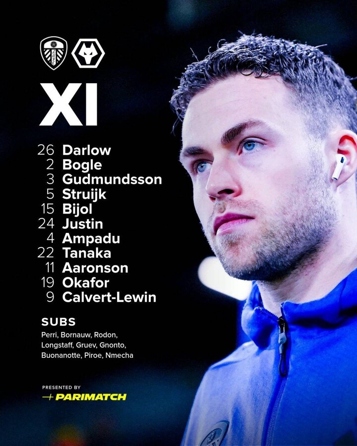 Leeds United XI: Darlow, Bogle, Gudmundsson, Struijk, Bijol, Justin, Ampadu, Tanaka, Aaronson, Okafor, Calvert-Lewin