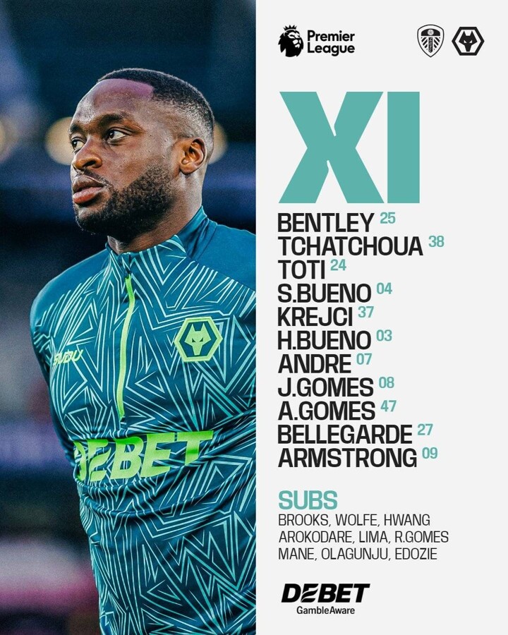 Subs: Brooks, Wolfe, Hwang, Arokodare, Lima, R.Gomes, Mane, Olagunju, Edozie