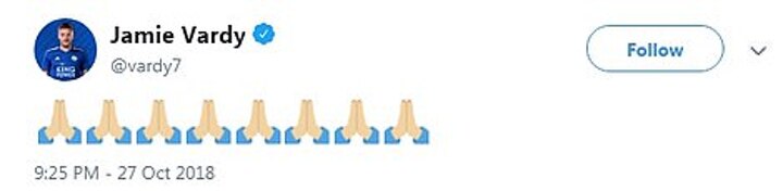 Leicester City defender Harry Maguire tweeted a video of the aftermath of the crash with praying hands emojis. Midfielder James Maddison, Ben Chilwell, Wilfred Ndidi and Jamie Vardy also posted the same emojis following the game.