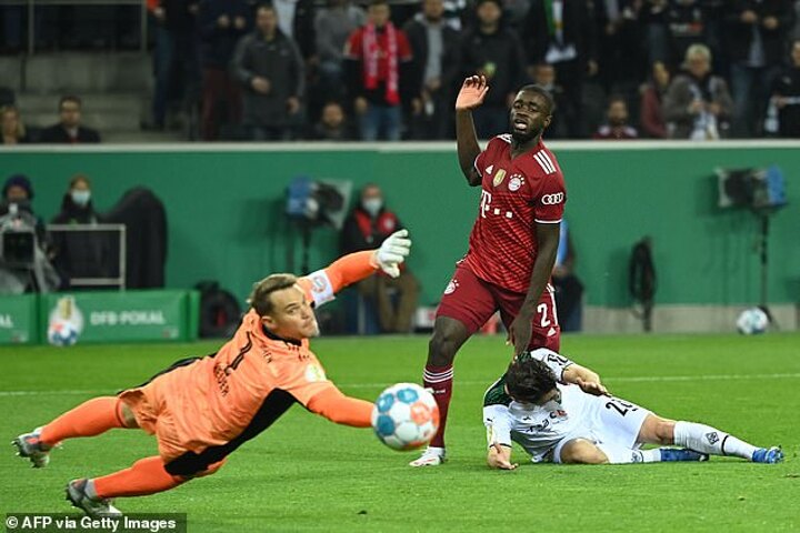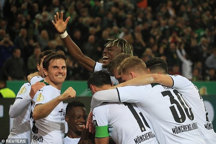 Monchengladbach became the first team to score three goals in the first 21 minutes against Bayern in a German Cup game and the first team to have scored five past the Bavarians since Borussia Dortmund's 5-2 win in the 2012 German Cup final.