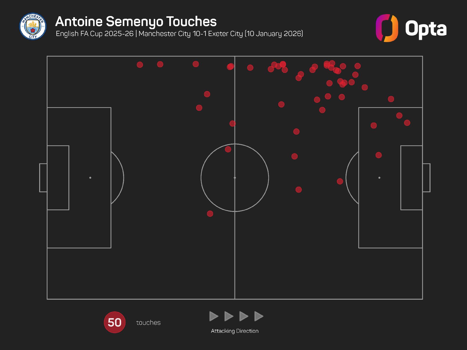 Semenyo is the first player to both score and assist on his debut for City, in all competitions, since Sergio Aguero against Swansea City in August 2011.
