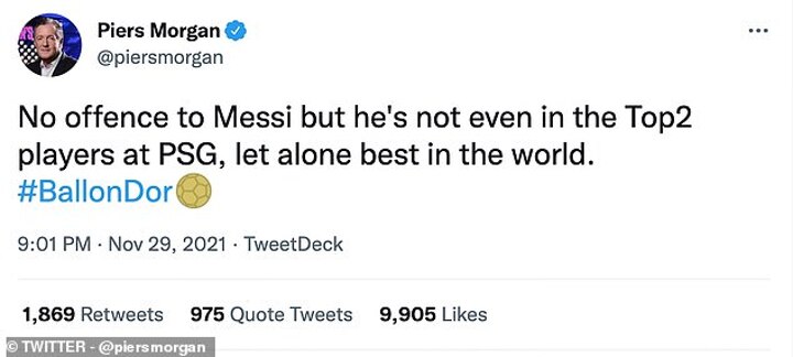 Meanwhile Piers Morgan argued Messi wasn't 'even in the top two players at PSG'.