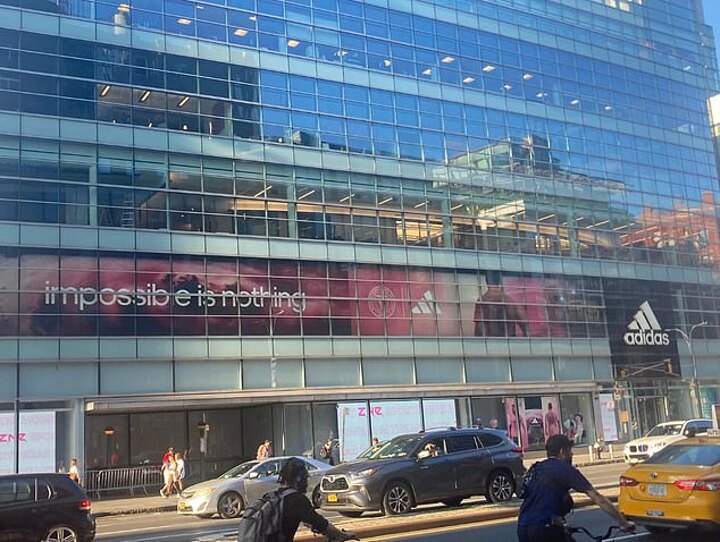 In New York, 1,300 miles away from Messi's new home in Florida, the windows of adidas' flagship store are filled with mock-ups of MLS' biggest star, alongside the slogan 'Impossible Is Nothing'.