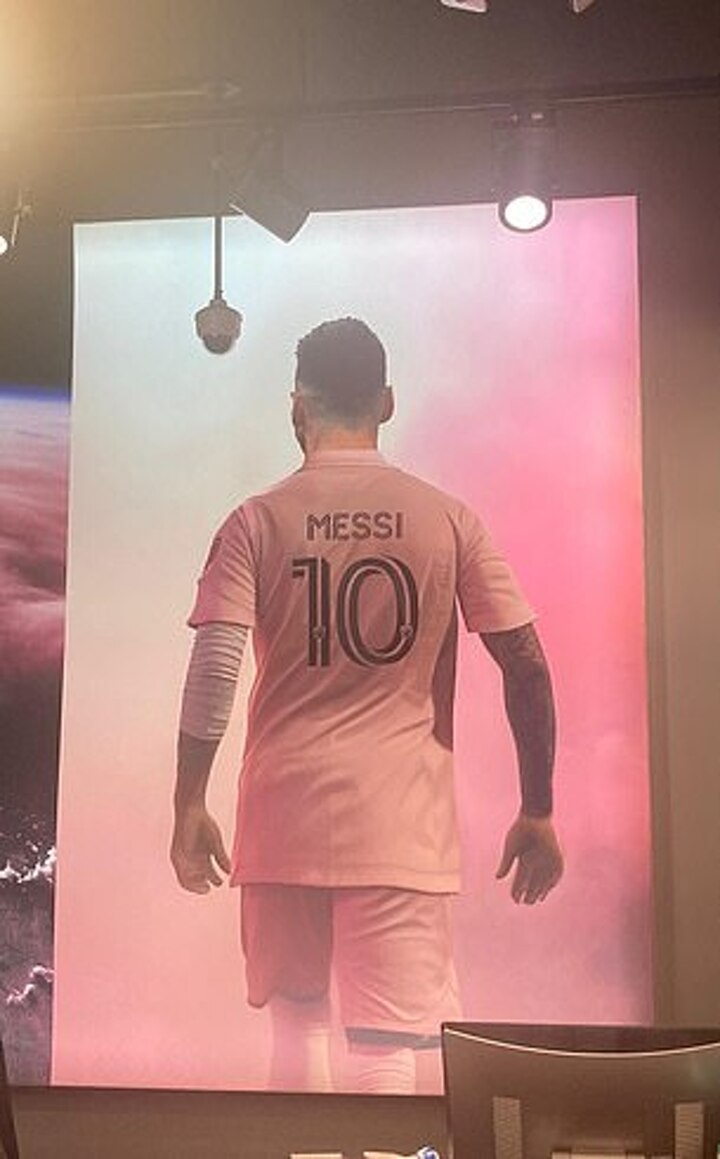 In pictures taken by DailyMail.com, the sportswear giant's Broadway venue is covered in pictures of Messi wearing his new Inter Miami strip, before he has even pulled it on himself.