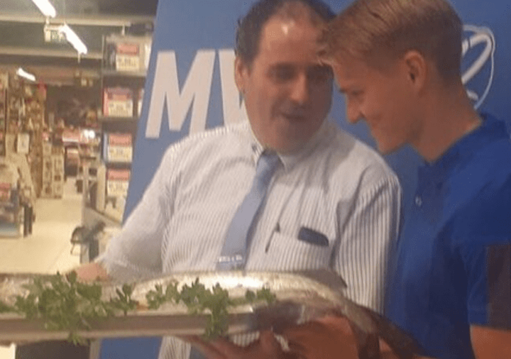 More were when they saw what he'd been handed for his efforts, though. A sports car? Shiny trophy? Or perhaps just a decent bonus? Nope. Instead, the creative midfielder was presented with a large fish at a supermarket – honoring the San Sebastian club's aquatic heritage.