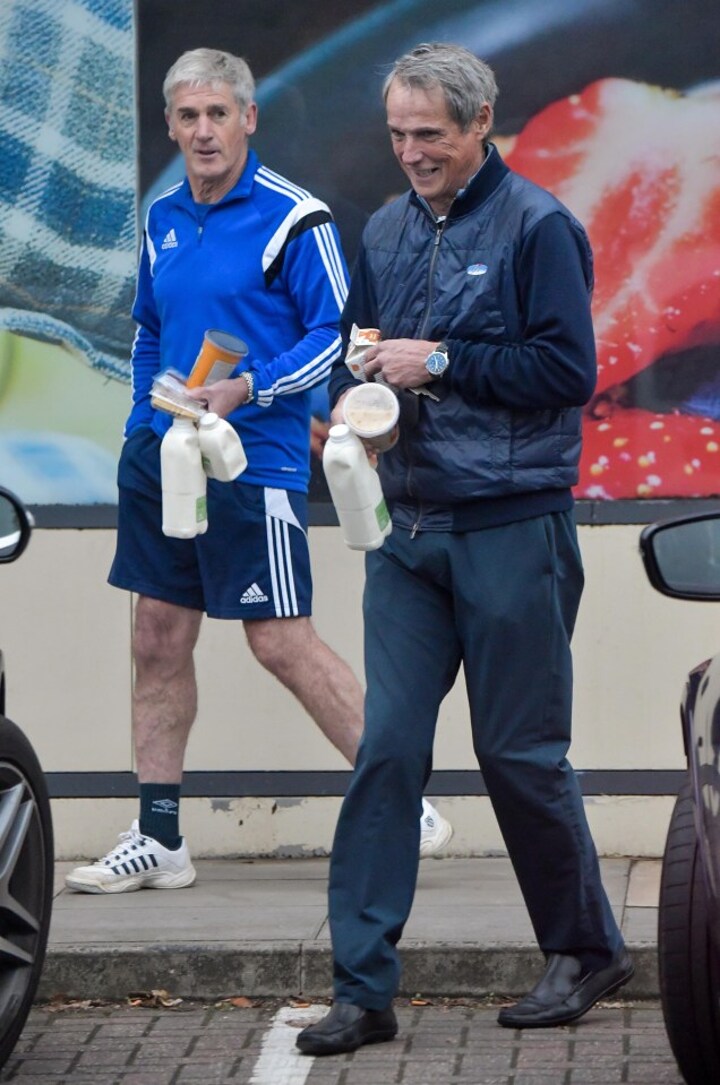 Hansen smiled alongside former Everton and Crystal Palace winger Alan Irvine as he came out carrying his milk and soup from the store.