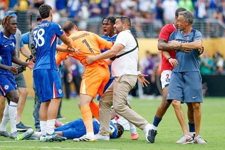 A mass brawl broke out following the 3-0 win, which also included clashes between goalscorers Cole Palmer and Joao Pedro, and PSG's Fabian Ruiz.