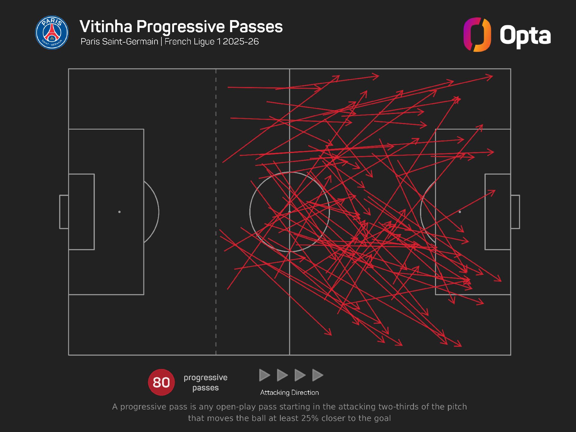 Vitinha is the only player to have made 200+ line-breaking passes in Ligue 1 this season, having made 111 more than any other player (303, 192 for second-placed Moussa Niakhate).