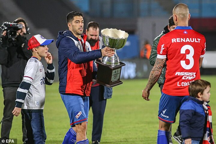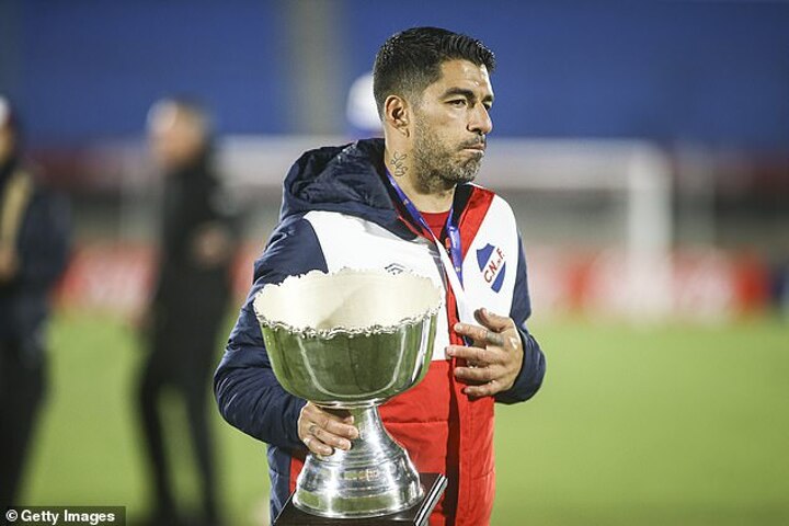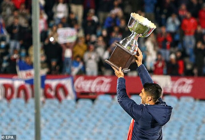 Luis Suarez has scooped his first trophy since returning to boyhood club Nacional - lifting the Primera Divison title after playing just ten games - which comes 16 years after he first won the competition at the start of his career.