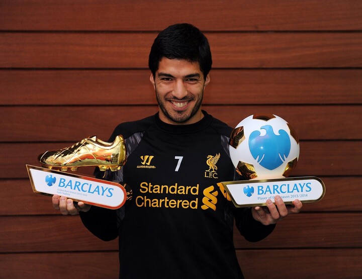 In January 2011, Suarez transferred to Liverpool and won the League Cup in his first full season. In 2014, he was named the PFA Players' Player of the Year and the FWA Footballer of the Year as well as winning the Premier League Golden Boot, and sharing the European Golden Shoe with Cristiano Ronaldo before moving to Barcelona in a transfer worth €82.3 million, making him one of the most expensive players in football history.