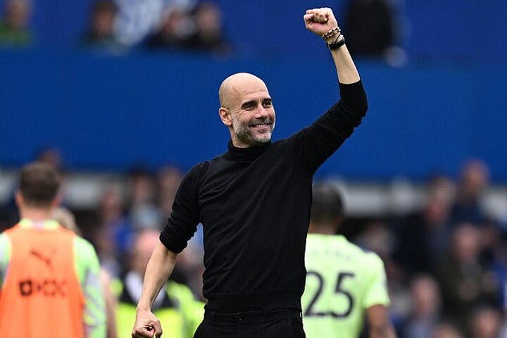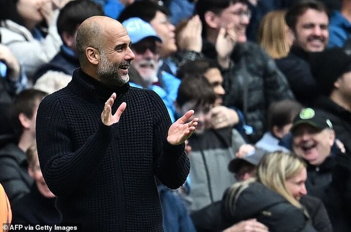 As the City players and staff approached the away end on a warm Sunday afternoon, the Catalan held two fingers aloft so as to signify the number of wins they would need from their final three games to be confirmed as champions.
