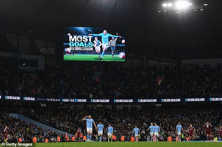 The Norwegian's second half goal, laid on by Grealish, sees him break the single season Premier League goalscoring record - eclipsing both Andrew Cole and Alan Shearer.
