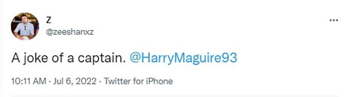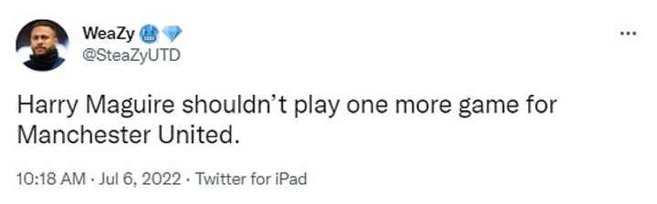 One fan wrote: 'Harry Maguire shouldn’t play one more game for Manchester United,' while another added: 'A joke of a captain,' before tagging the player himself.