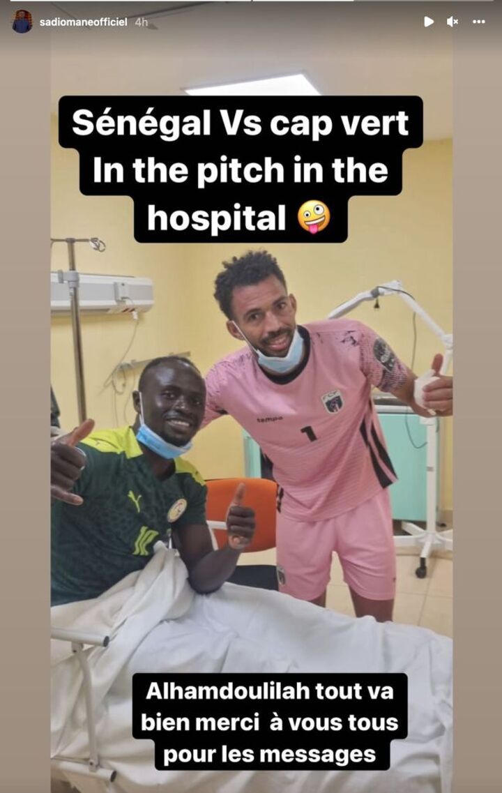 Liverpool player Sadio Mané revealed he was taken to hospital after a clash of heads with Cape Verde's Vozinha, but the forward insisted that "all is well".