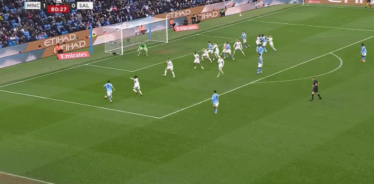 City only needed six minutes to go ahead, with Rayan Ait-Nouri flashing in a low cross that Alfie Dorrington diverted into his own net, though that goal did not open the floodgates as Salford dug in, and the hosts saw centre-back Max Alleyne limp off injured.