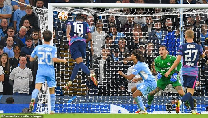Then Nkunku hauled Jesse Marsch's Leipzig back into the contest by halving the deficit with a header, but City's two-goal lead was restored by Riyad Mahrez's penalty following Lukas Klostermann's handball.