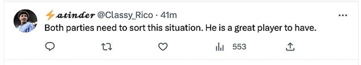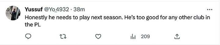 Others preempted any fears about him signing for another Premier League club by declaring: 'Honestly he needs to play next season. He's too good for any other club in the PL'.