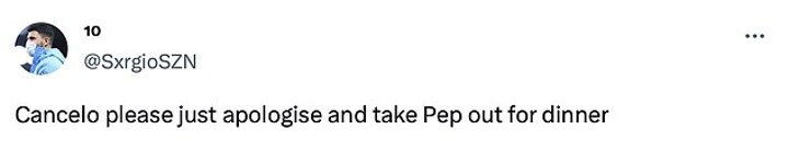 'Cancelo please just apologise and take Pep out for dinner'. One fan requested as he watched the Portuguese's performance.