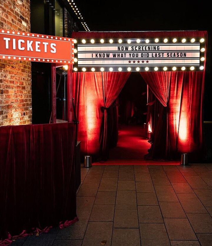 Guests were greeted by a cinema-style entrance, red curtains and a glowing sign announcing the feature presentation.