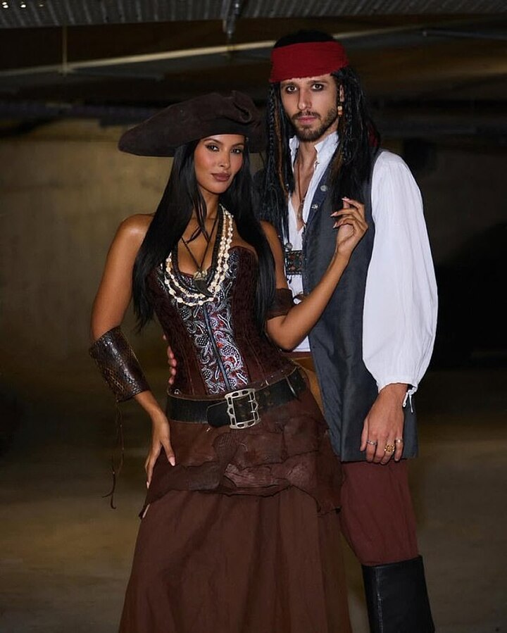 The pair channelled Pirates of the Caribbean, with Dias sporting a rum-soaked Jack Sparrow look and Jama presumably going as Kiera Knightley's Elizabeth Swann.