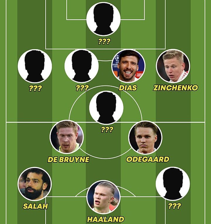 Either side of him are Kevin De Bruyne, the majestic conductor of Pep's dizzyingly complicated orchestra, and potentially one of the Players of the Season in Arsenal skipper Martin Odegaard. One of two Norwegians to make the team...