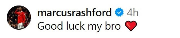His former team-mates were quick to comment with Marcus Rashford saying 'good luck my bro'.
