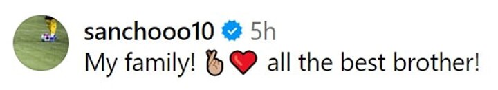 Jadon Sancho echoed the sentiment, writing: 'my family! All the best brother!'
