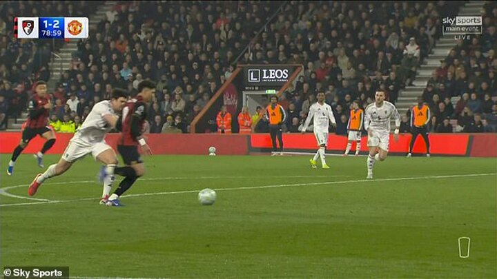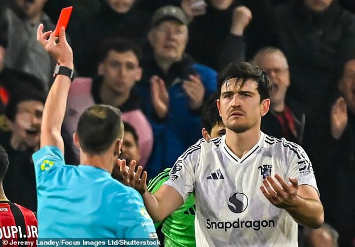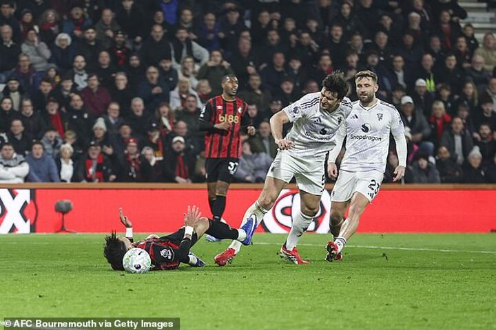 Moments after referee Stuart Attwell had opted not to pause play amid Amad's protestations late on in the clash with Bournemouth on the south coast, Maguire pulled down Evanilson in his own penalty area, in a move which saw the England international sent off.