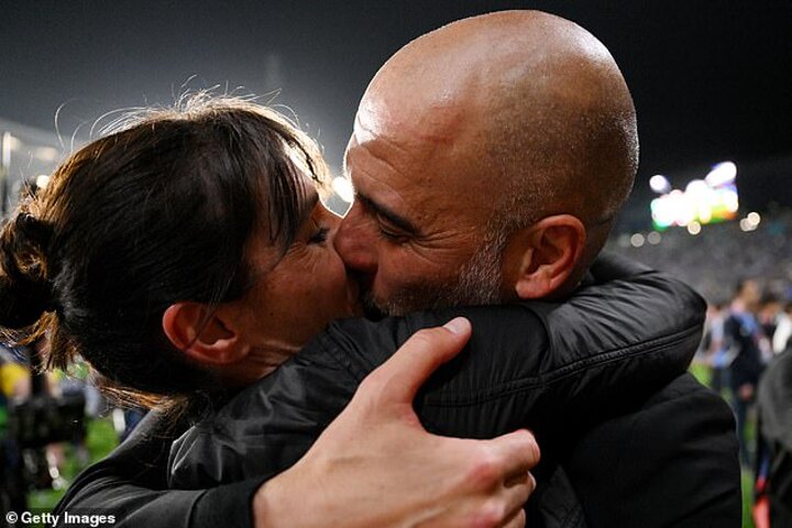 Elsewhere, Manager Pep Guardiola, who was in tears at full-time, sealed the win with a passionate kiss with his wife Cristina as players, coaches and backroom staff celebrated on the pitch with their families. 'It was written in the stars, this belongs to us and we did it,' he said, as he admitted the game was much closer than he had anticipated.