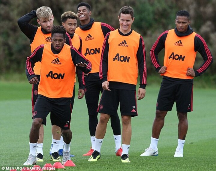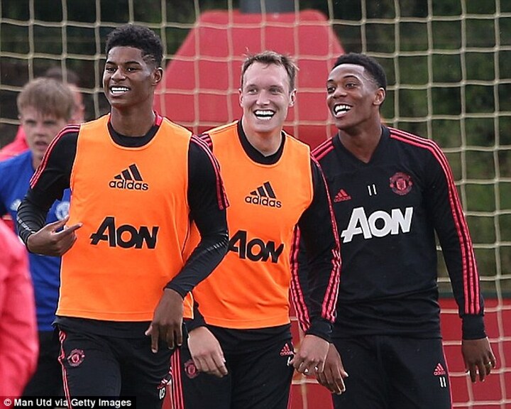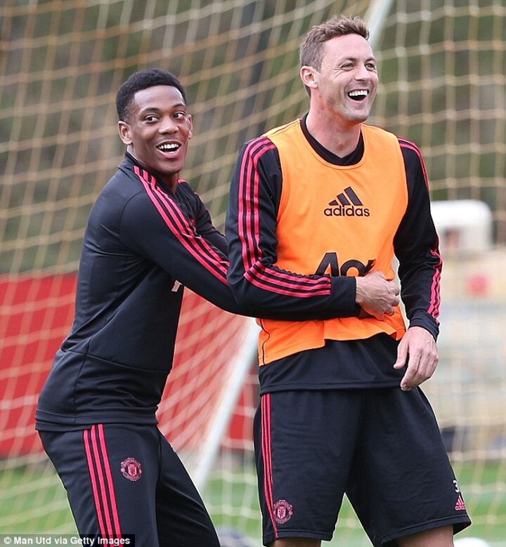 Manchester United players quashed any sense of negativity around the camp as they were pictured laughing and joking together with manager Jose Mourinho during training on Friday