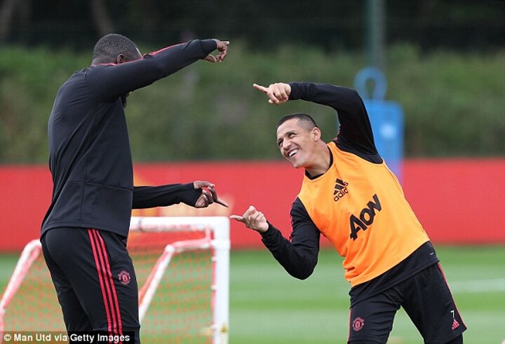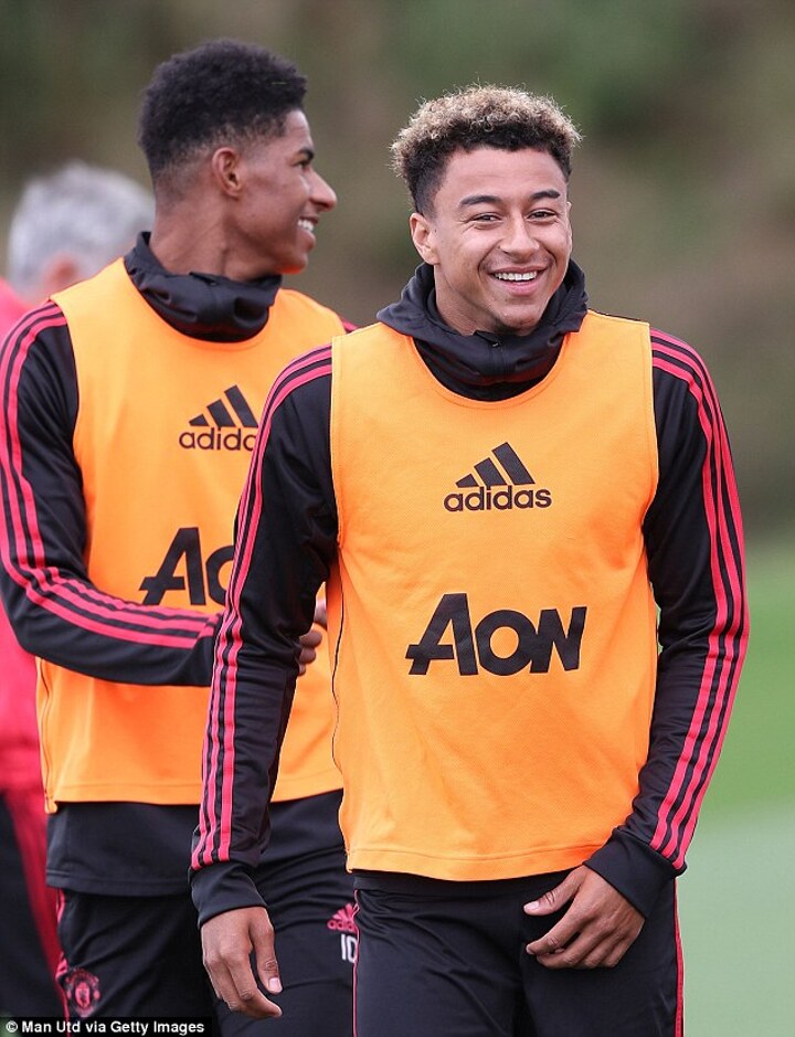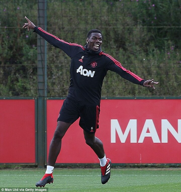 Spirits looked to be high among the group as Jesse Lingard, Paul Pogba and Romelu Lukaku all wore beaming grins as they took part in a light-hearted session at their Aon Training Complex.
