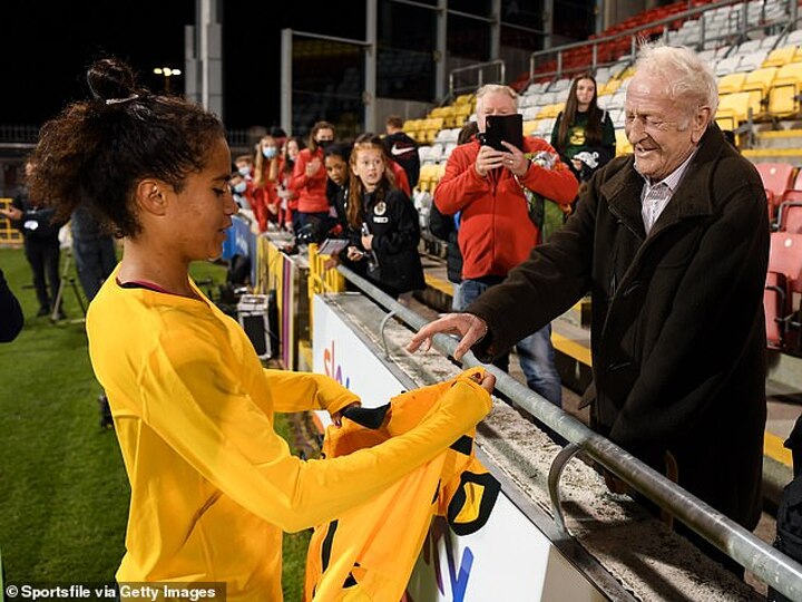 While Ireland didn't get what they want, Fowler had a very sweet moment in 2021 after the Matildas lost to Ireland - a game in which she scored twice - where she was able to reunite with her treasured grandfather, Kevin.