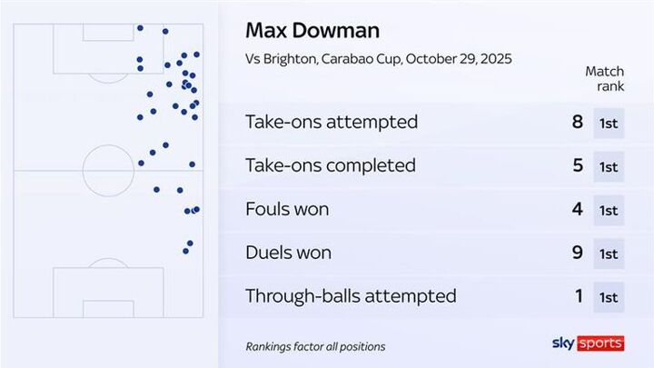 Dowman, who started training with Arsenal's first-team aged 14, put in an impressive performance, attempting nine dribbles and completing five of them - more than anyone on the pitch - as well winning a game-high nine duels.