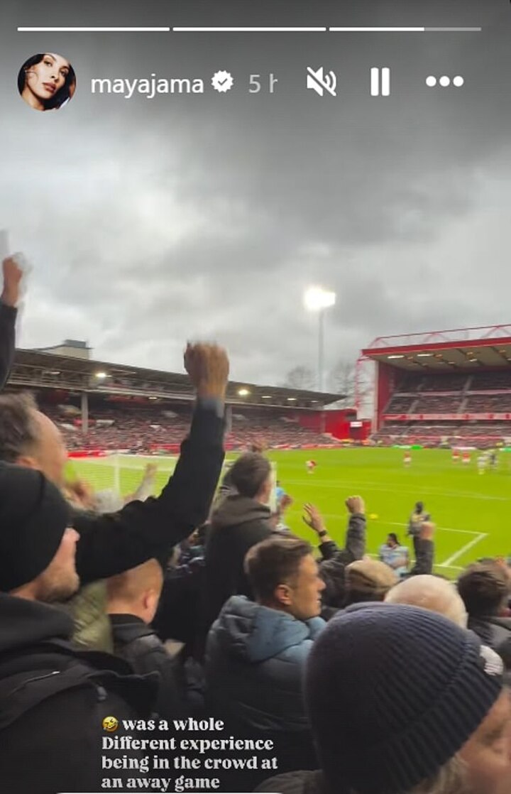 Jama shared updates with her 3.2 million Instagram followers, writing: 'Was a whole different experience being in the crowd at an away game.'