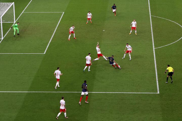 Mbappe scoring for France against Poland in Qatar (Photo: Michael Steele via Getty Images)