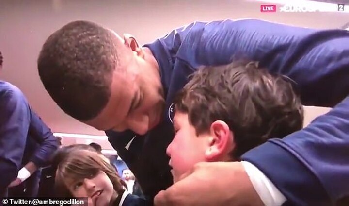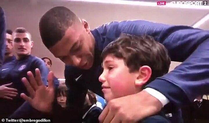 Mbappe soon spots the emotional youngster and feels compelled to step in to put a smile back on his face.