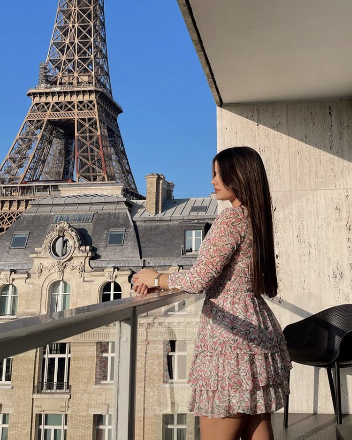 She captioned a photo, "Spring in Paris" wearing a pretty dress.