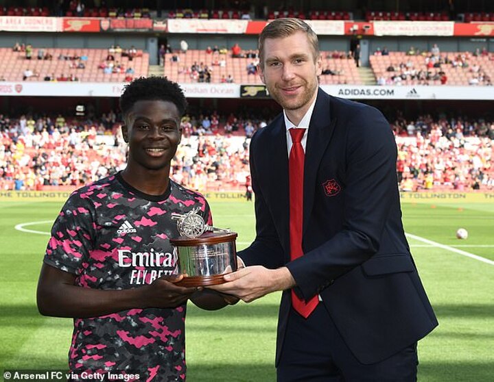 Mertesacker told The Mirror: 'It's always been a narrative at Arsenal to give young players a chance to play at the top. We're asking Bukayo and Emile to lead us back to the Champions League. They will proudly take that but we also have to understand the context.